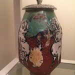 Philosophical ideas, current world conditions, the individual’s experience, and graphic novels largely influence my artistic practice. Concepts such as these are expressed through androgynous cartoon figures on ceramic vessels. The vessel’s proposed purpose is determined by the concept that is behind the piece. In essence, both the figures depiction and the vessel function are derived by the idea that fuels it.